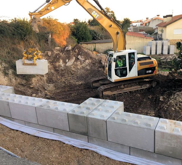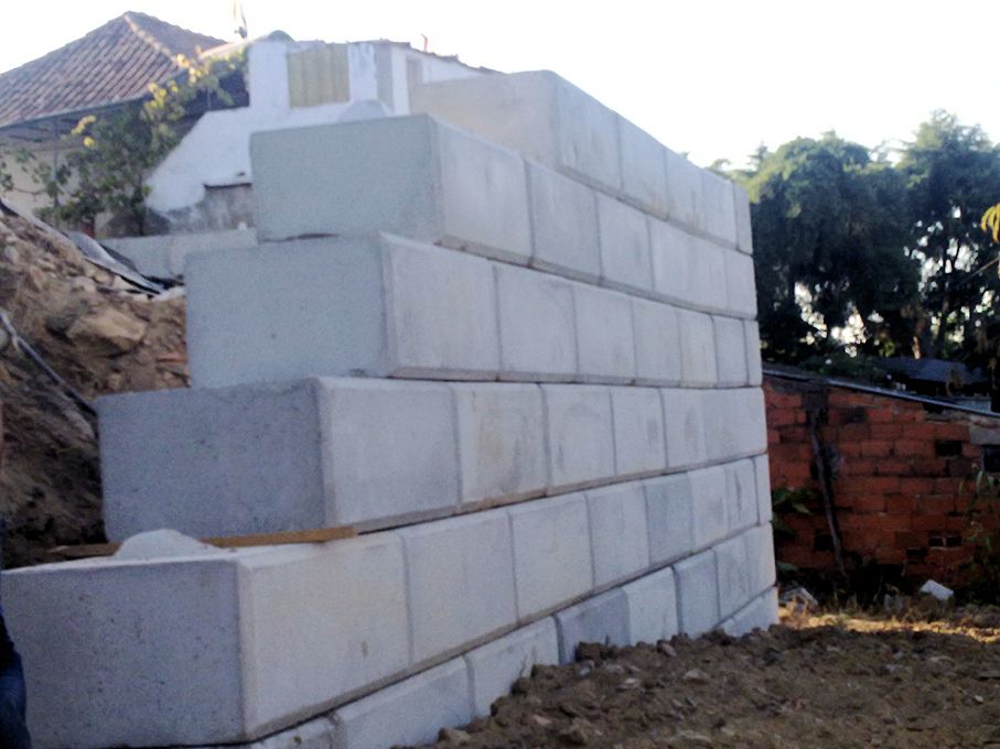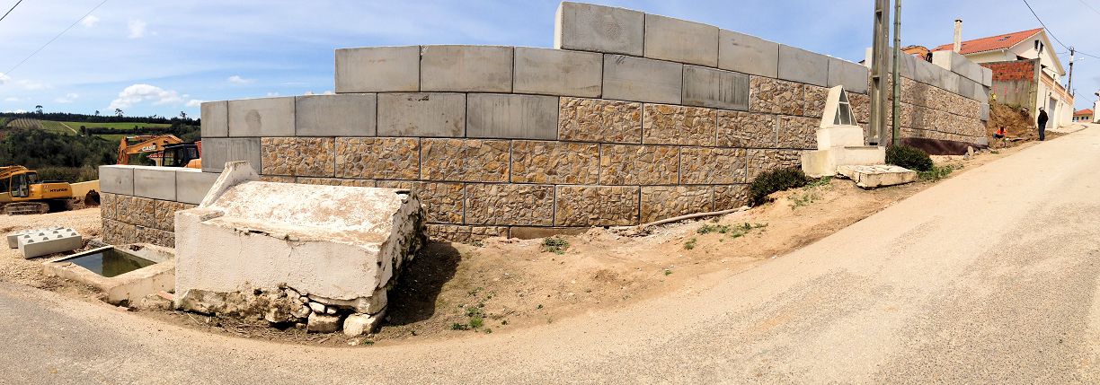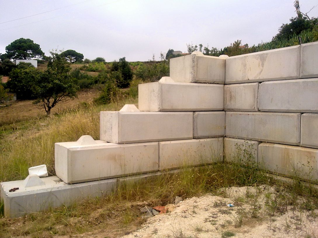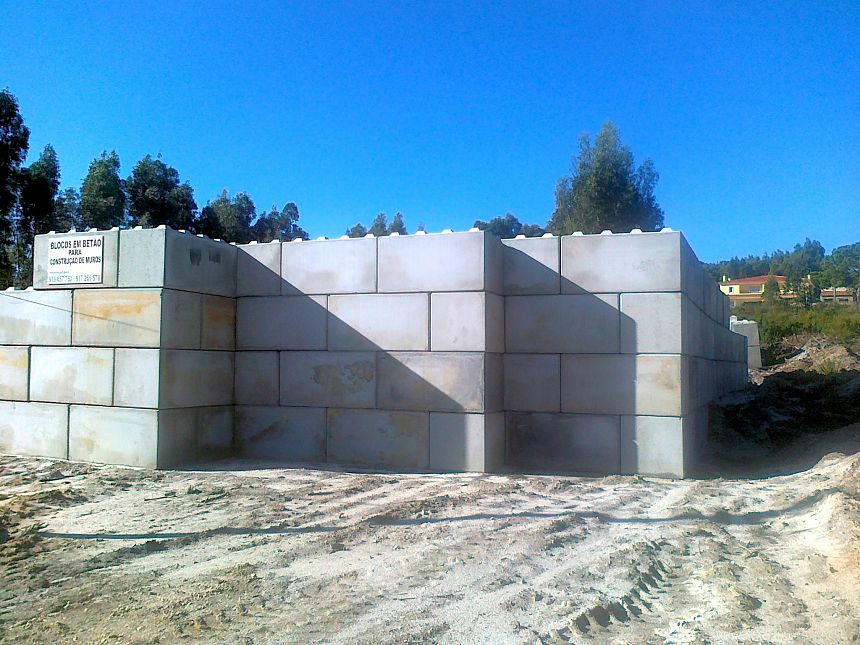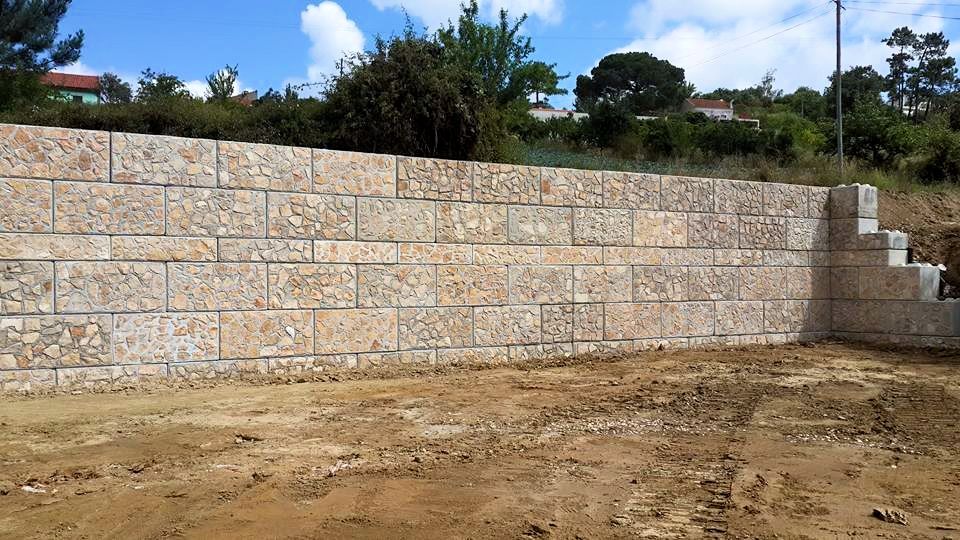 Solução de blocos maciços em betão para a construção de muros de contenção com ou sem acabamento em pedra rústica. A grande vantagem deste produto é a rapidez de construção e versatilidade, para além do facto de ser uma construção amovível e dinâmica, podendo ser em qualquer ocasião mudada, aumentada ou transformada. Fazemos fornecimento e montagem destes blocos.