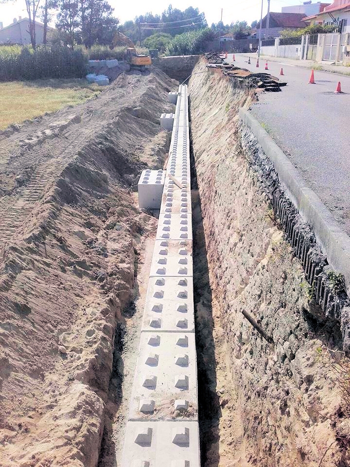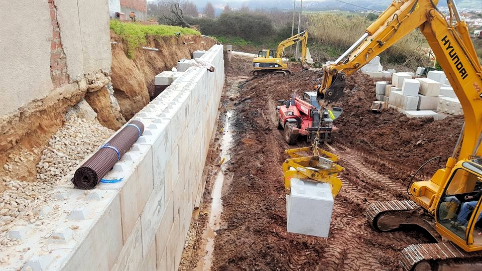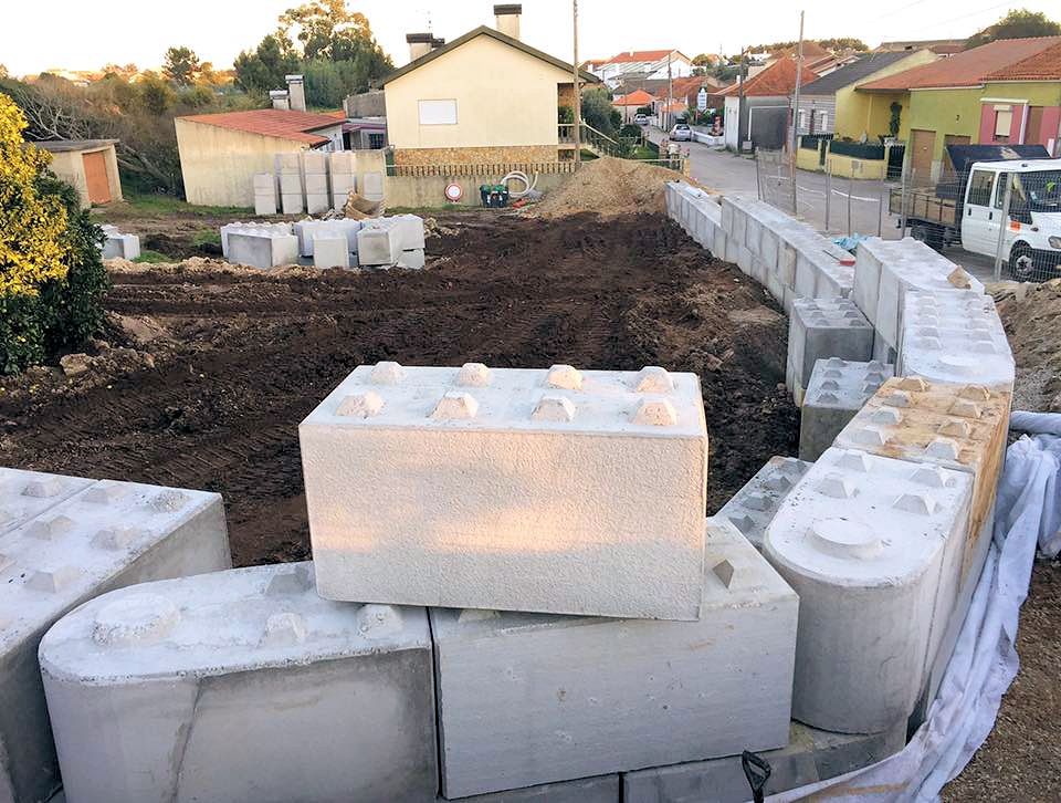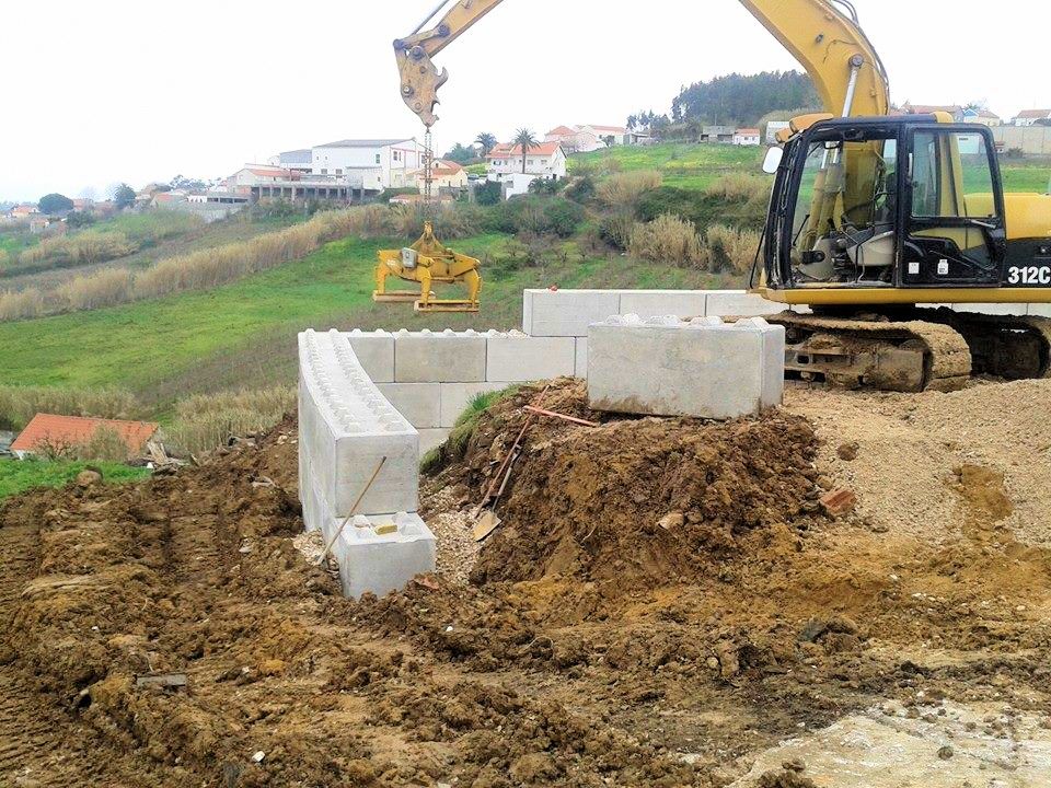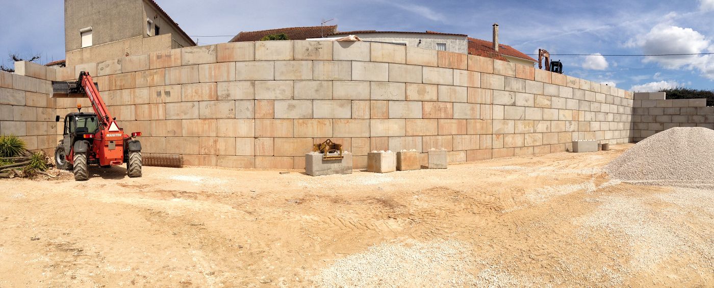 Solução de blocos maciços em betão para a construção de muros de contenção com ou sem acabamento em pedra rústica. A grande vantagem deste produto é a rapidez de construção e versatilidade, para além do facto de ser uma construção amovível e dinâmica, podendo ser em qualquer ocasião mudada, aumentada ou transformada. Fazemos fornecimento e montagem destes blocos.